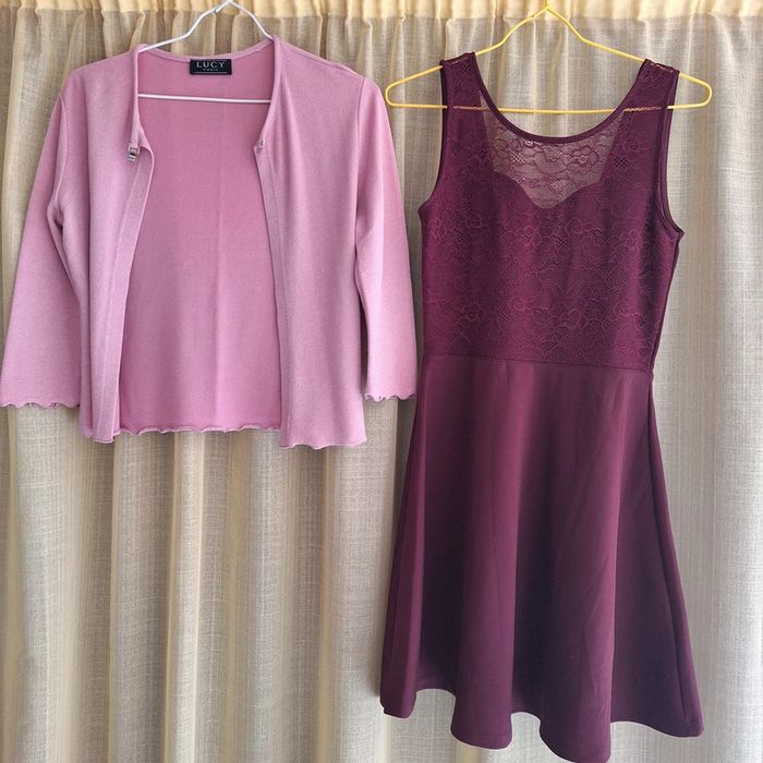 Robe: Hauteur totale 81cm Très belle robe légère fait a la fois habillé et robe de tout les jours Gilet: En mousseline leger TU