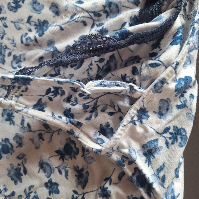 Très jolie motif Peu portée Mais très agréable à porté matière douce Taille plutôt S Bretelle reglable Longeur dans bretelle 75cm Matière elastique