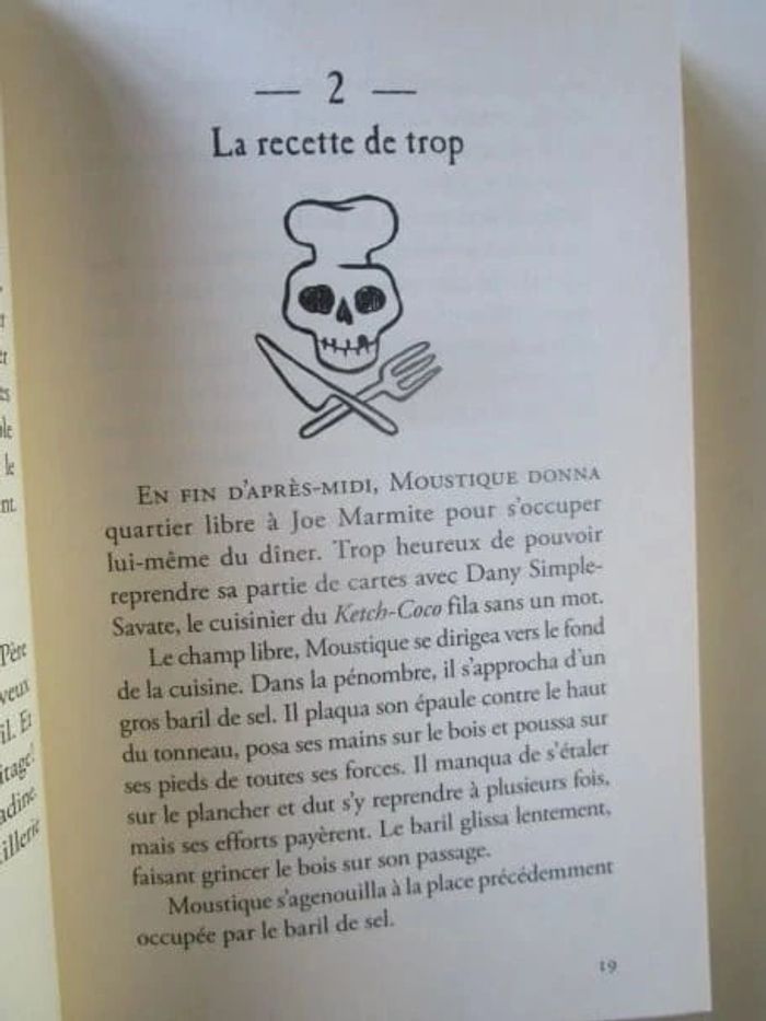 À l'abordage ! Le dîner est servi... Moustique Lagrogne a beau être l'héritier de deux grandes familles de pirates, il ne sait pas cracher, a une peur maladive des perroquets et n'a aucun intérêt pour les lames tranchantes si ce n'est pour découper de gourmands desserts ! Car depuis toujours, Moustique rêve d'être cuisinier. Mais son père, le célèbre capitaine Fynn Lagrogne, n'est pas du tout, du tout d'accord : Moustique devra suivre l'apprentissage pour devenir capitaine pirate, un point, c'est tout ! Voilà Moustique forcé de s'entraîner pour les traditionnelles - et effrayantes - épreuves imaginées par le Haut-Conseil de la Grande Piraterie : le fameux Jour du Cache-OEil... Éditeur ‏ : ‎ Castelmore 286 pages Âge de lecture ‏ : ‎ 8 - 11 ans Dimensions ‏ : ‎ 13 x 2 x 19.5 cm Livre en très bon état (Livre de médiathèque, couvert avec tampon) Je vends un autre livre de la même collection et sur les pirates #phil_peg_pirates Si plusieurs livres vous intéressent, n'hésitez pas à m'envoyer un message afin que je vous fasse un lot et ainsi profiter de réduction. #pirate