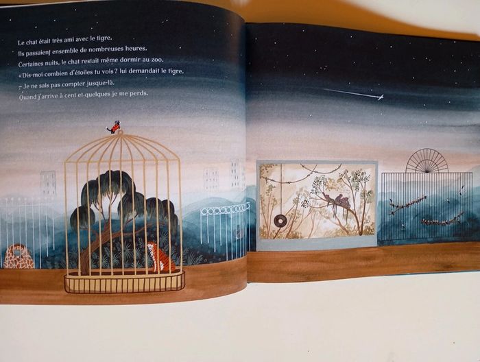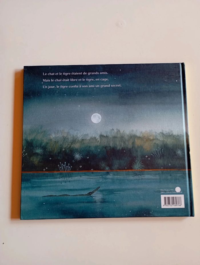 Le chat était très ami avec le tigre. On les voyait toujours ensemble, au zoo. Le tigre à l’intérieur de la cage et le chat à l’extérieur. Ou à l’intérieur. Un beau jour, le tigre confie au chat la nostalgie de ces jours anciens où il était libre et pouvait regarder la Lune se refléter dans le fleuve. Ensemble, et avec un l’aide d’un complice imprévu, ils organisent l’évasion du grand félin. Leur secret. Une ode touchante à l’amitié et à la liberté portée par les illustrations somptueuses et poétiques de Miren Asiain Lora. Éditeur ‏ : ‎ MARTINIERE Jeunesse 32 pages Âge de lecture ‏ : ‎ 4 - 7 ans Dimensions ‏ : ‎ 23.9 x 0.9 x 26 cm Prix éditeur : 13,9€ Livre état neuf #chat #tigre #amitié #liberté #secrets #captivité #évasion #entraide #gardien #relationhommeanimal