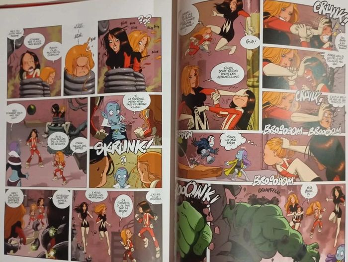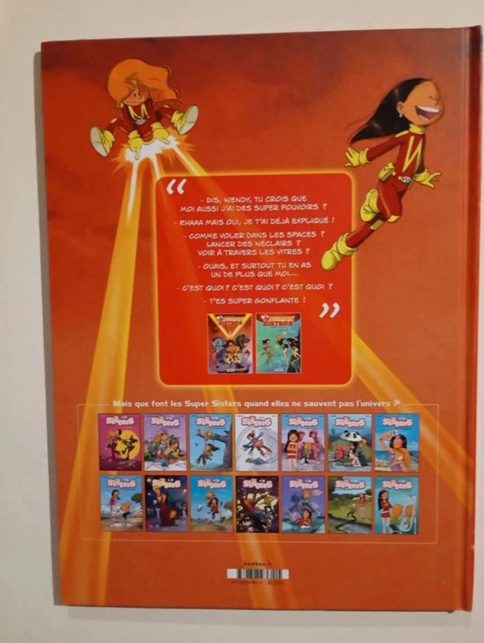 Les Sisters enfilent leur costume de super-héroïne ! Une Super Sister, ça ne fait pas que sauver le monde, ça va aussi à l'école ! Mais comment apprendre ses leçons lorsqu'un camarade de classe se transforme en monstre destructeur ? Toujours prêtes à résoudre les problèmes - et sans tricher, en plus - Super Wendy et Super Marine se lancent à la recherche du Super Vilain qui se cache derrière tout ça. Les indices les conduisent directement sur la piste de leur vieille ennemie, la génie du crime Shal Kashmir. Cette dernière a trouvé le moyen de cloner nos héroïnes afin de se débarrasser d'elles. En effet, qui dans l'univers pourrait être capable de battre les SuperSisters tout en se disputant autant qu'elles sinon leurs propres clones ? Éditeur ‏ : ‎ Bamboo 48 pages Âge de lecture ‏ : ‎ 7 - 11 ans Dimensions ‏ : ‎ 21.5 x 1 x 29.3 cm BD NEUVE Je vends d'autres bd des sisters : #phil_peg_sisters #lessisters #bdjeunesse