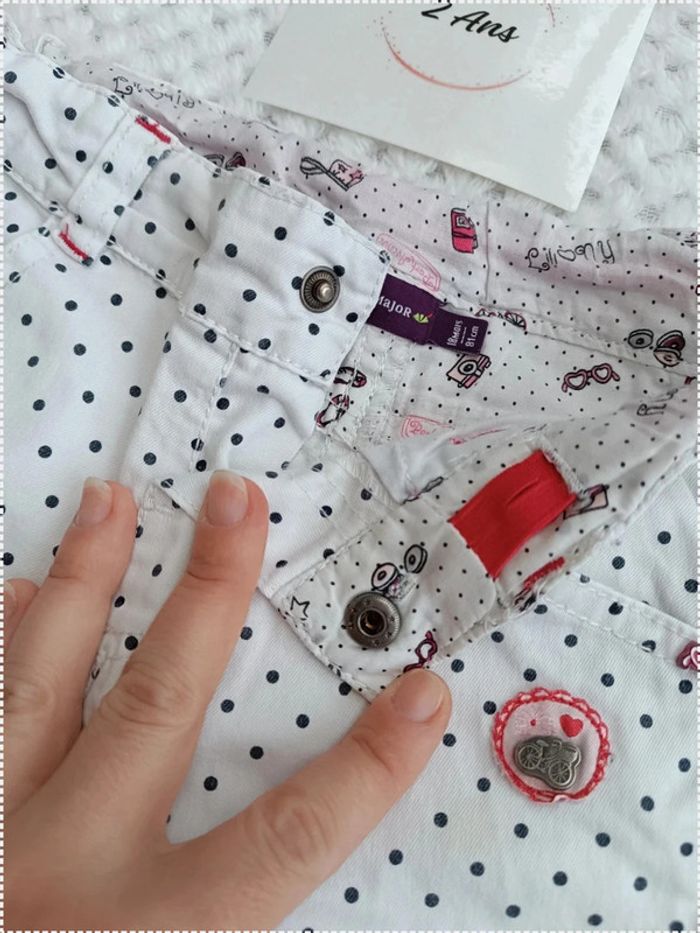 🔸Pantalon Sergent Major Blanc à Petits Pois Noirs – 18 Mois🔸 - photo numéro 7