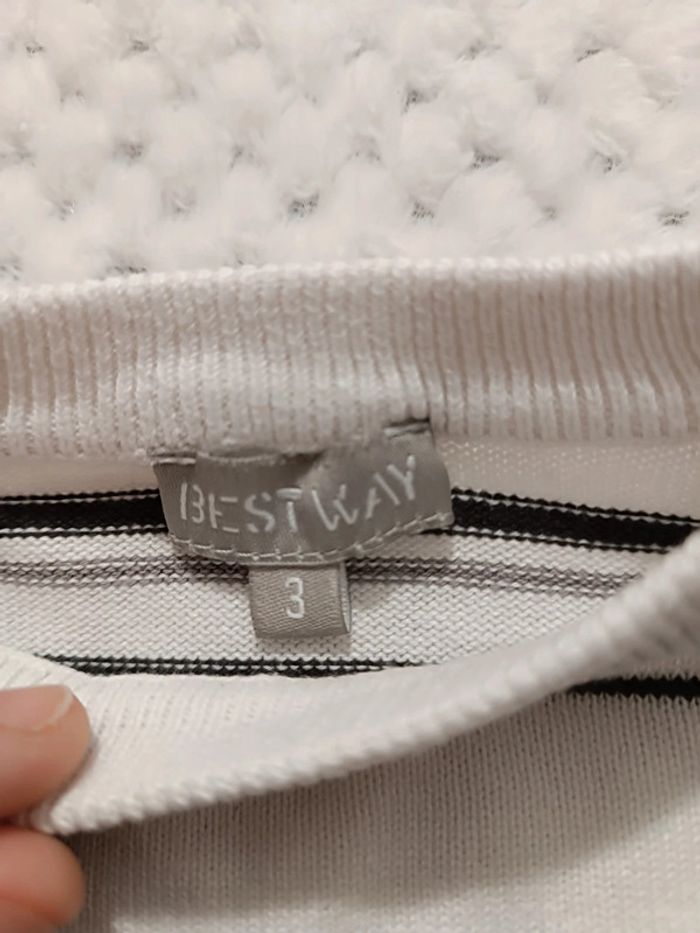 🔸Pull Rayé Blanc & Marron/Bleu – Best Way 3 Ans🔸 - photo numéro 2