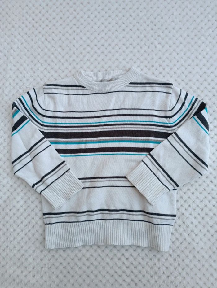 🔸Pull Rayé Blanc & Marron/Bleu – Best Way 3 Ans🔸 - photo numéro 1