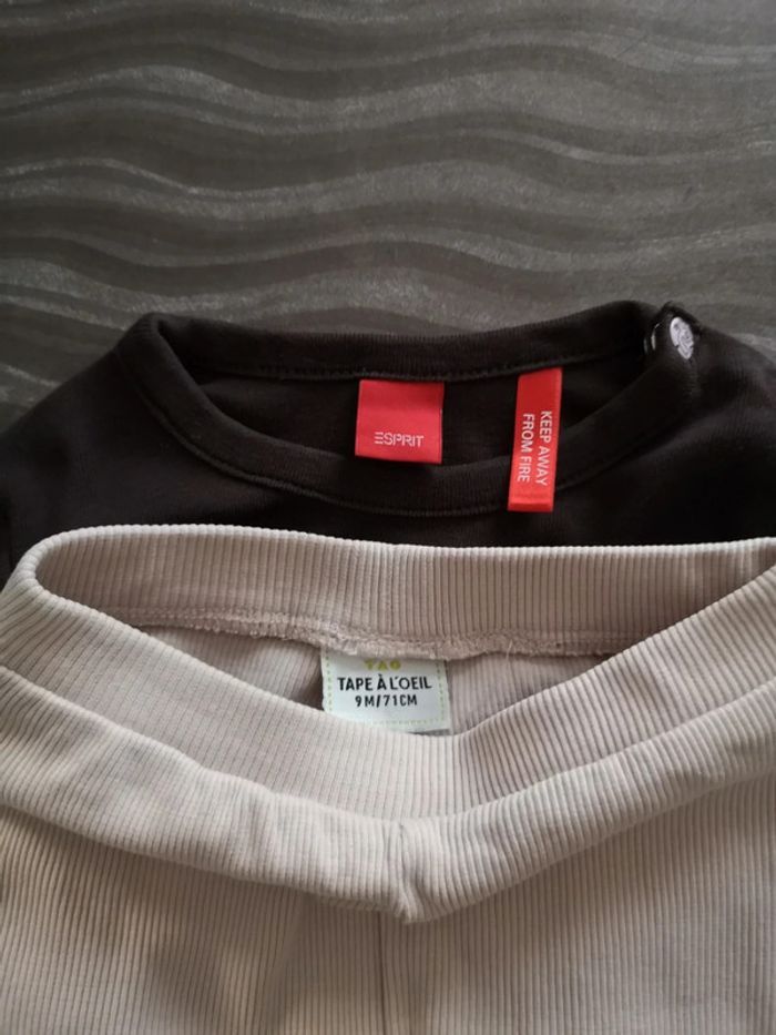 #juliie_62_9mois Ensemble composé d'un maillot manche longue marron et d'un legging rose Taille 9 mois Marque esprit / tape à l'œil En très bon état