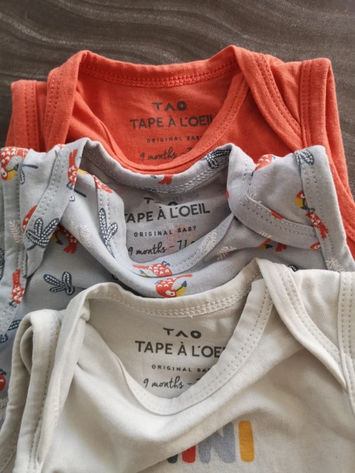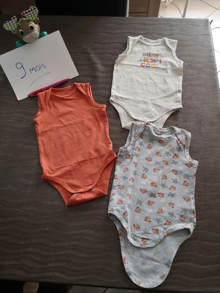 #juliie_62_9mois Lot de 3 bodies sans manche Taille 9 mois Marque tape à l'œil. En très bon état