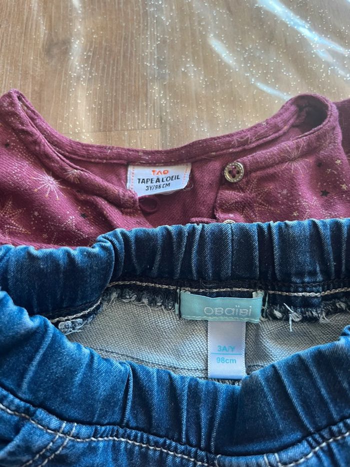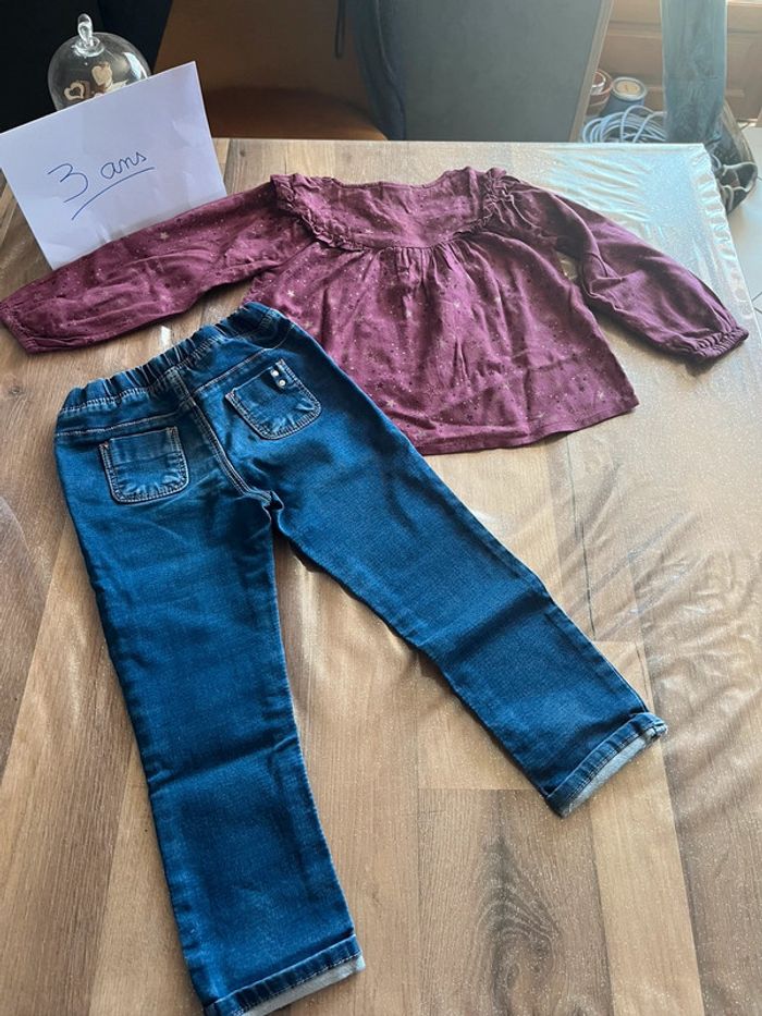 #juliie_62_3ans Ensemble composé : - d’un jean : marque obaibi - d’une blouse - marque tape à l’œil Taille 3 ans En très bon état