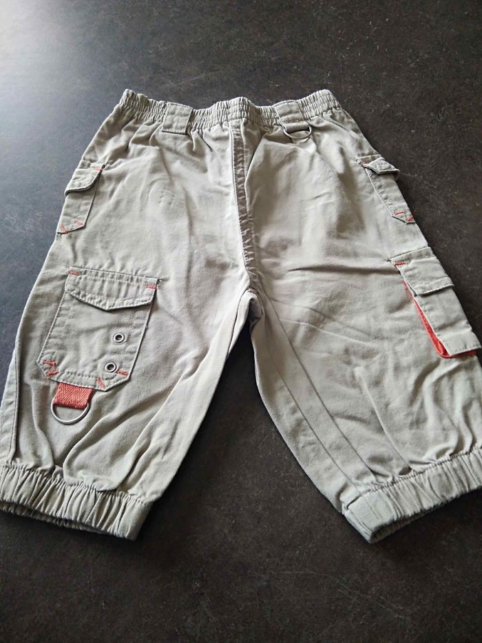 Neuf. Pantalon beige et orange en toile, 6 mois