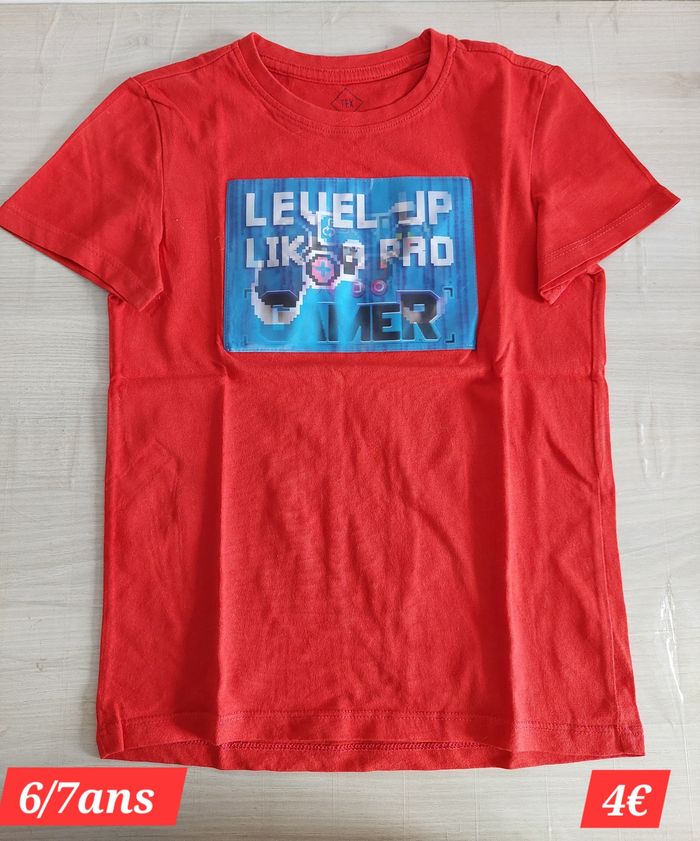 Vends T-shirt manches courtes garçon 6/7ans Il est en très bon état et il a été mis Maison non fumeur Le prix d'achat est indiqué sur la photo 1