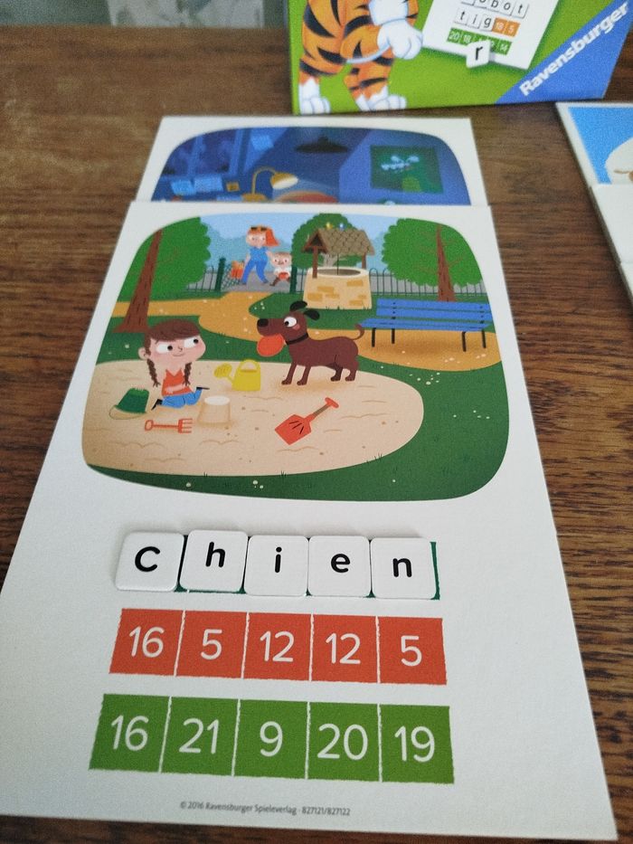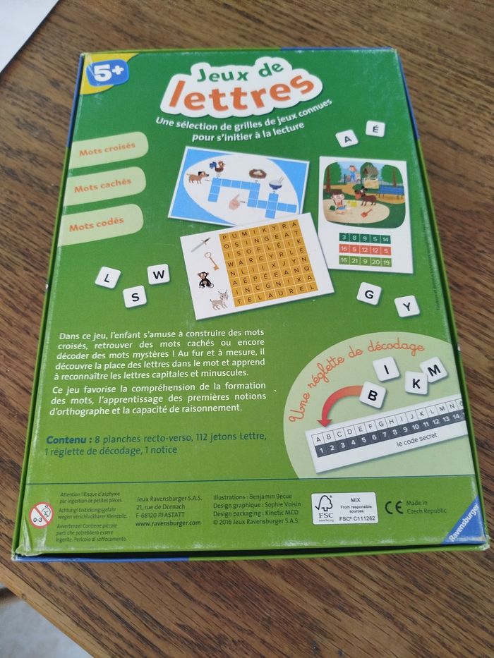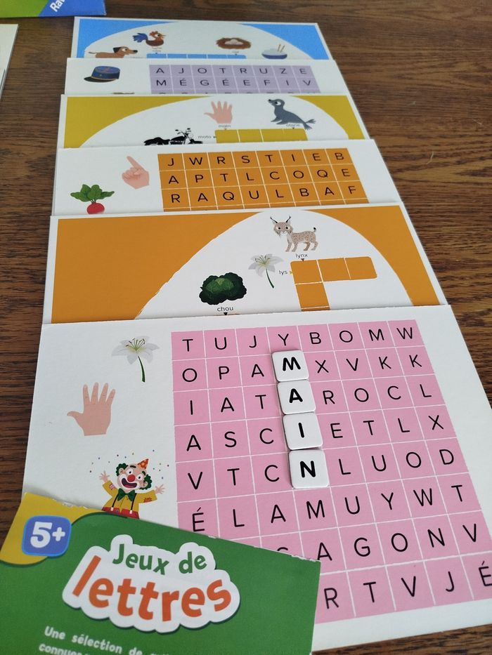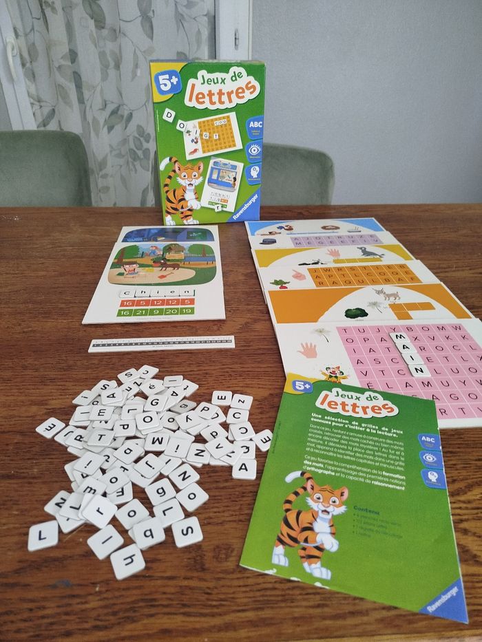 Dans ce jeu, l'enfant s'amuse à construire des mots croisés, retrouver des mots cachés ou encore décoder des mots mystère ! Au fur et à mesure, il découvre la place des lettres dans le mot et apprend à reconnaître les lettres capitales et minuscules. Ce jeu favorise la compréhension de la formation des mots, l'apprentissage des premières notions d'orthographe et la capacité de raisonnement.