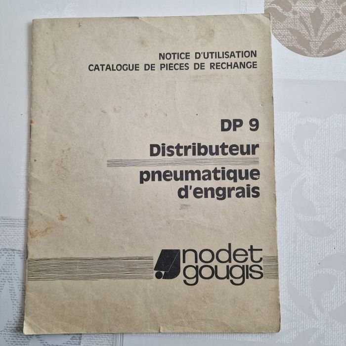 très ancienne notice d'utilisation du semoir DP 9 catalogue de pièces de rechange DP 9 distributeur pneumatique d'engrais NODET GOUGIS en bon état malgré son vieil âge :) je n'ai pas trouvé de date ( peut être 60- 70 ?) 16 pages