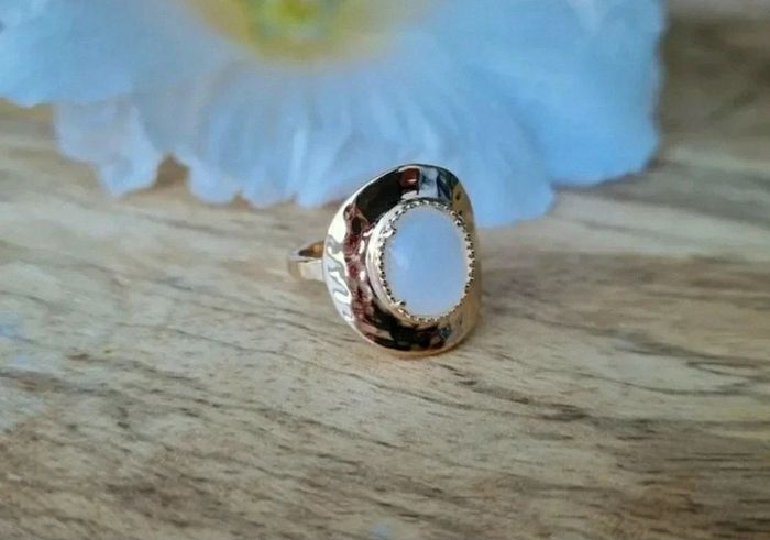 • Mélanie, notre jolie bague pastille martelée en plaqué or jaune 18 carats sertie d'une véritable pierre de lune. • La pierre de lune stimule la féminité. Elle aide à la fécondité et calme les douleurs menstruelles. Elle accroit l'intuition, la douceur, la tendresse et l'amour maternelle. • Largeur: 18 mm. • Plaqué or: Nos bijoux en plaqué or sont faits sur une base de laiton et recouverts d'or 18 carats à 3 microns sans dispersion. Cela signifie que nous garantissons 3 microns d'or sur n'importe quelle partie du bijou. Sur la plupart de nos bijoux empierrés, nous montons à 5 microns d'or 18 carats. Pour finir, une finition avec de l'or 24 carats est réalisée afin de donner un plus bel éclat aux bijoux. • Toutes nos pierres sont des pierres naturelles, ce qui explique que leurs formes et leurs couleurs peuvent varier. • Résiste à l'eau douce et ne noircit pas. • Sans nickel, ni plomb, ni cadmium et hypoallergénique. • Livrée dans un joli pochon et une boite Moon and Sun Bijoux, prête à offrir !