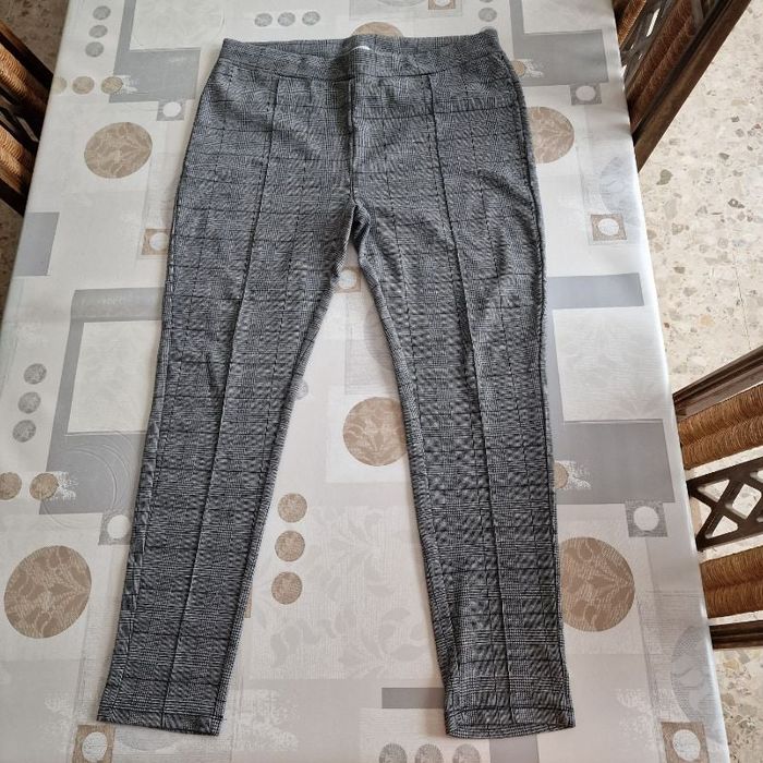 pantalon pour femme motifs gris - noir taille élastique marque GEMO taille XL épais petite bande devant sur toute la longueur longueur environ 100 cm pas de poche très bon état