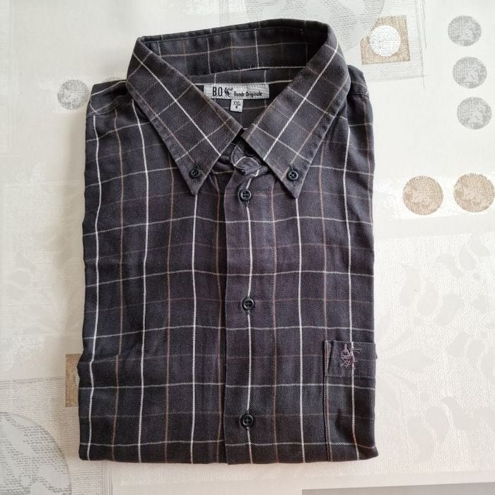 très belle chemise pour homme avec des carreaux noires manches longues taille 6 ( XXL) une poche devant col fantaisie avec des boutons en très bon état marque BO BANDE ORIGINALE 100 % coton les mesures : aisselles à aisselles environ 68 cm longueur environ 81 cm
