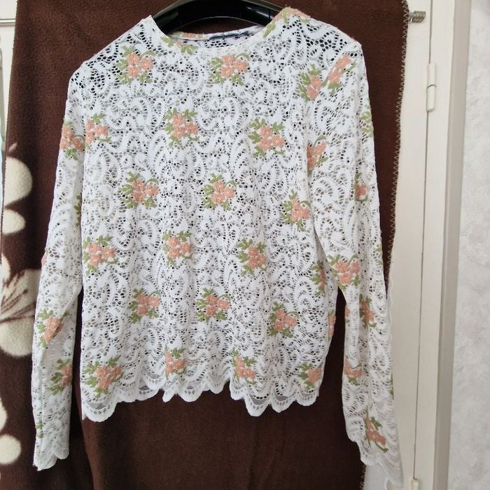 très beau haut fantaisie avec son débardeur brodé avec des fleurs couleur blanc beige avec fleurs manches longues manches et bas fantaisies très bon état taille XL je ne sais pas la matière ( plus d'étiquette ) le haut mesure environ 60 cm aisselle à aisselle environ 56 cm le débardeur est de couleur blanc beige en V mesure environ 46 cm aisselle à aisselle 48 cm