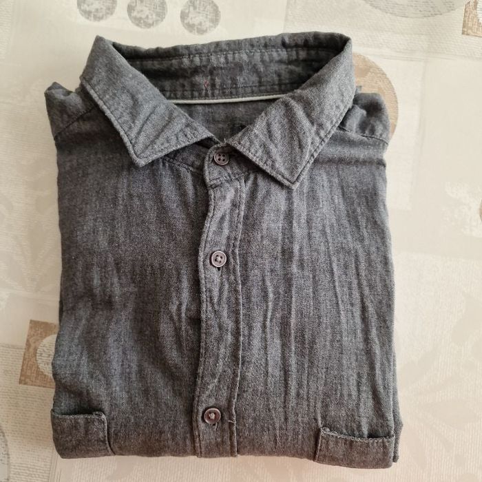 chemise légère pour homme couleur grise manches longues aves des boutons taille ( je ne sais pas, coupé l'étiquette :) 2 poches devant avec bouton 100 % coton en bon état aisselle à aisselle environ 55 cm du col en bas ( devant ) environ 66 cm du col en bas ( derrière ) environ 69 cm