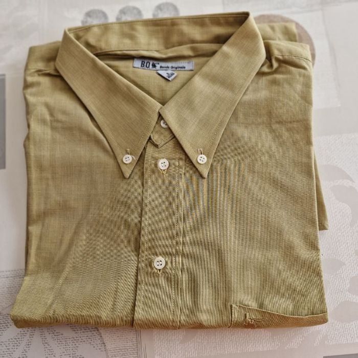 chemise homme verte/beige/moutarde manches longues aves des boutons marque : BO Bande Originale taille 6/45/46 hauteur environ 88 cm 1 poche devant 60 % coton 40 % polyester en très bon état