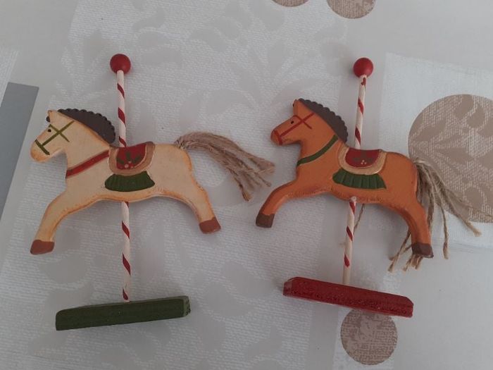 très belles décorations de noël 2 chevaux en bois à poser en très bon état hauteur 7 cm