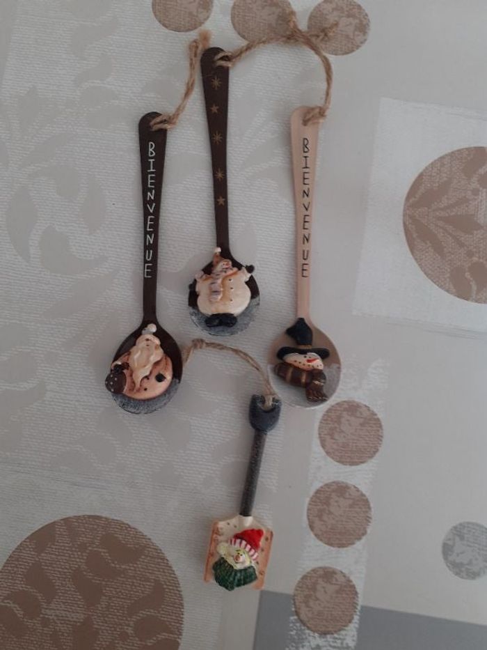 très belles décorations de Noël à suspendre 4 cuillères en métal en très bon état les 3 grandes mesurent environ 17 cm la plus petite environ 10 cm