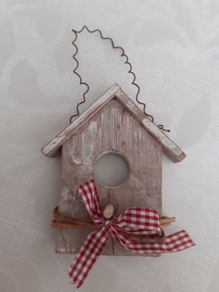 très belle décoration à suspendre nid fantaisie en bois avec 1 noeud en très bon état hauteur environ 9 cm longueur environ 7.5 cm largeur environ 1 cm
