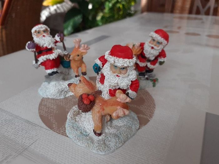3 pères noël avec des rennes à poser en très bon état hauteur 6 cm