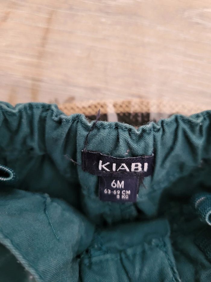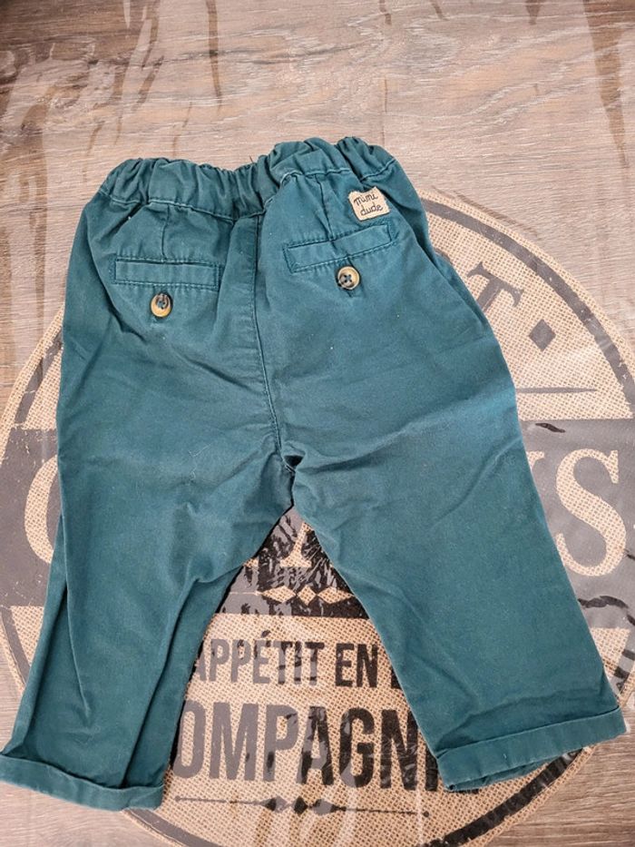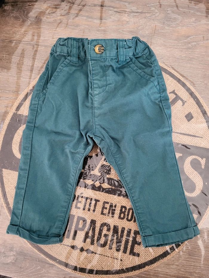 Vends pantalon bleu canard, taille 6 mois, de la marque Kiabi, en très bon état.