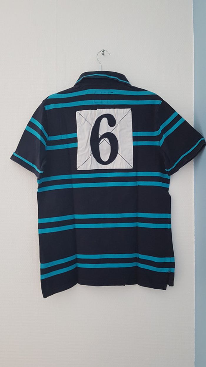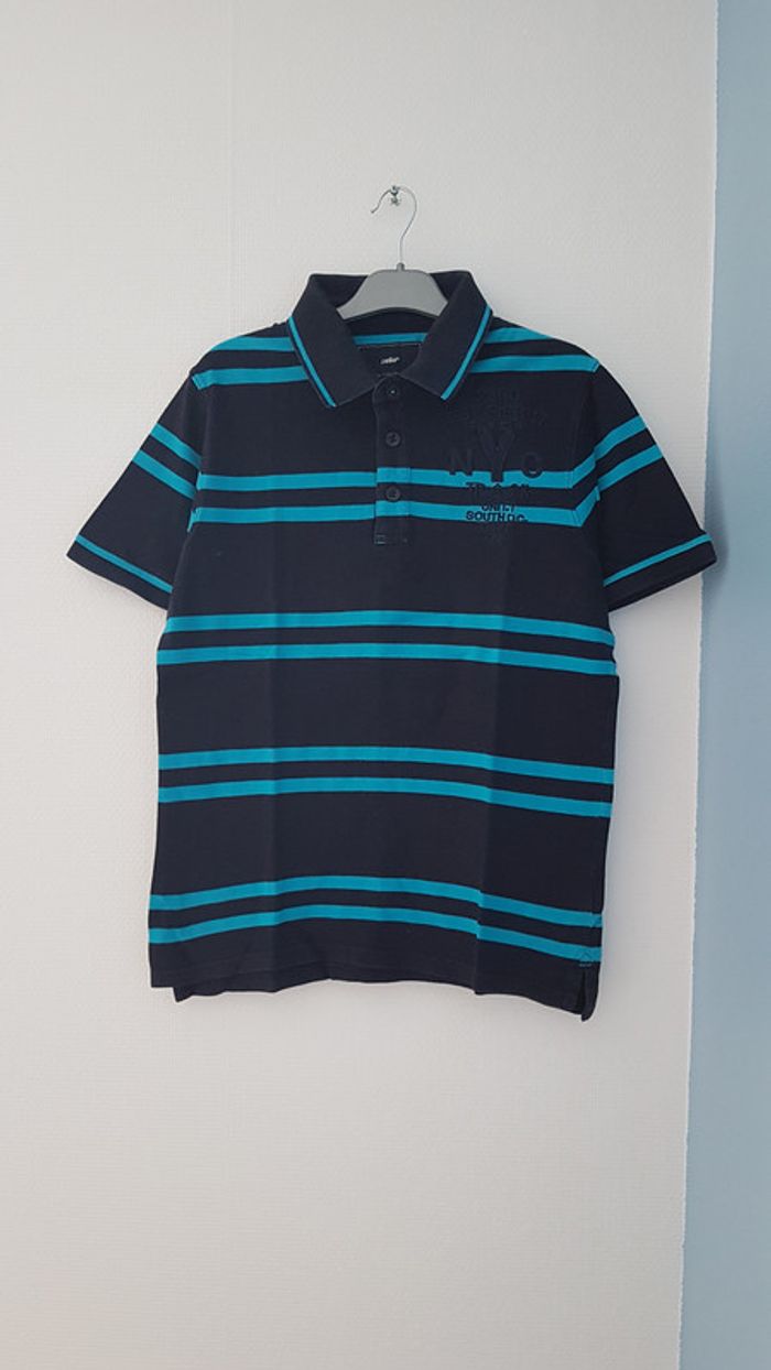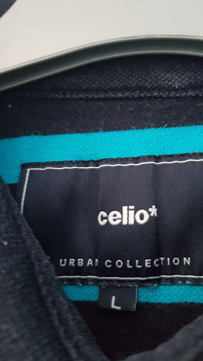 Polo noir et bleu, taille L, en bon état.
