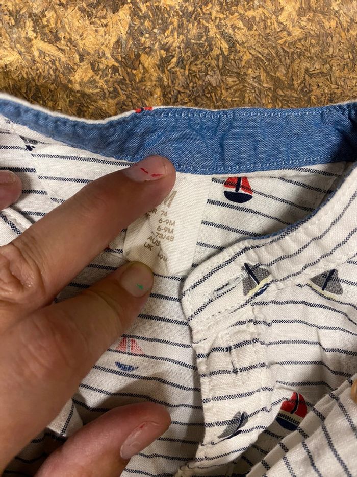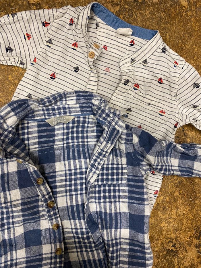 Lot de 2 chemises manches longues Taille 9 mois (la bleu taille petit, la blanche taille grand…) Primark est H&M