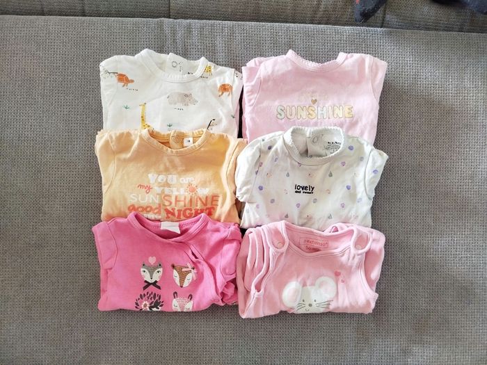 Lot de jolies pyjamas pour bébé fille 1 mois Plusieurs marques différentes Les deux du bas sont de taille 56 cm et un 0-3 mois.