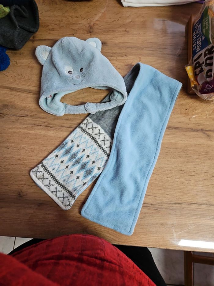 Bonnet et écharpe bleu clair 0/6 mois garçon - photo numéro 1