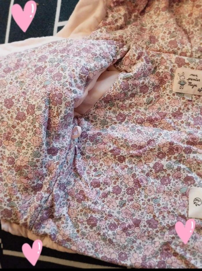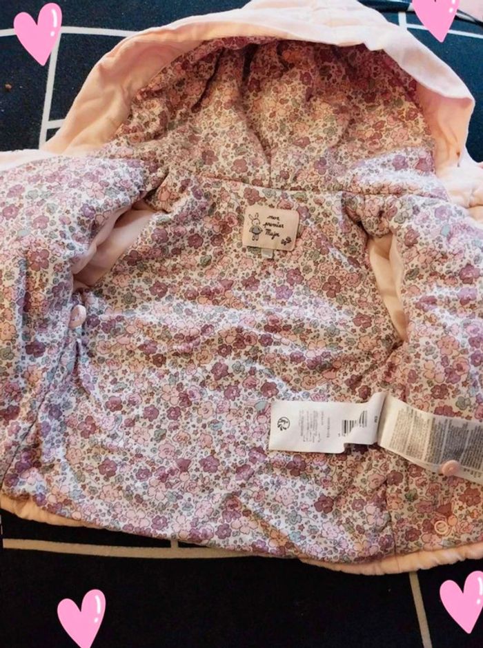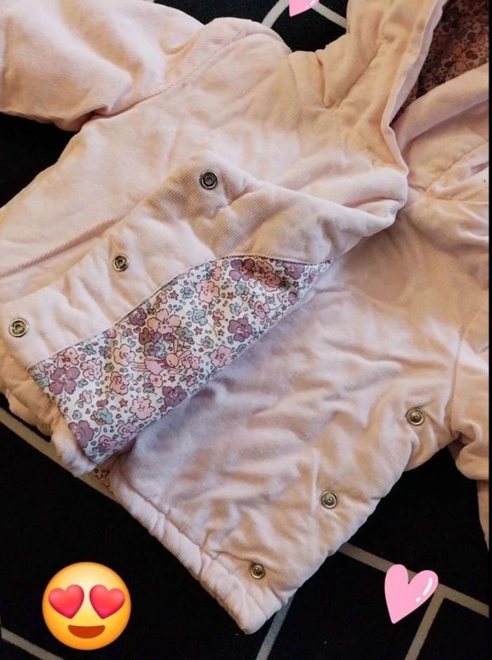 Jolie manteau rose avec motif fleurie à l'interieur. En parfait état et bien chaud. Taille 6 mois 68cm. Acheter neuf en boutique Sergent Major. Servi à 1 seul enfant. Bouton et pressions ok. Pas de taches, ni trou, ni bouloche. Bouton de rechange présent. Mesures en photos #6moisadelicia44