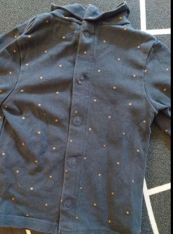 Col roulé taille 6mois 63/69cm. Manches longues. Bleu marine motif doré. Marqie Kiabi.Pressions au dos. Mesures en photos #6moisadelicia44
