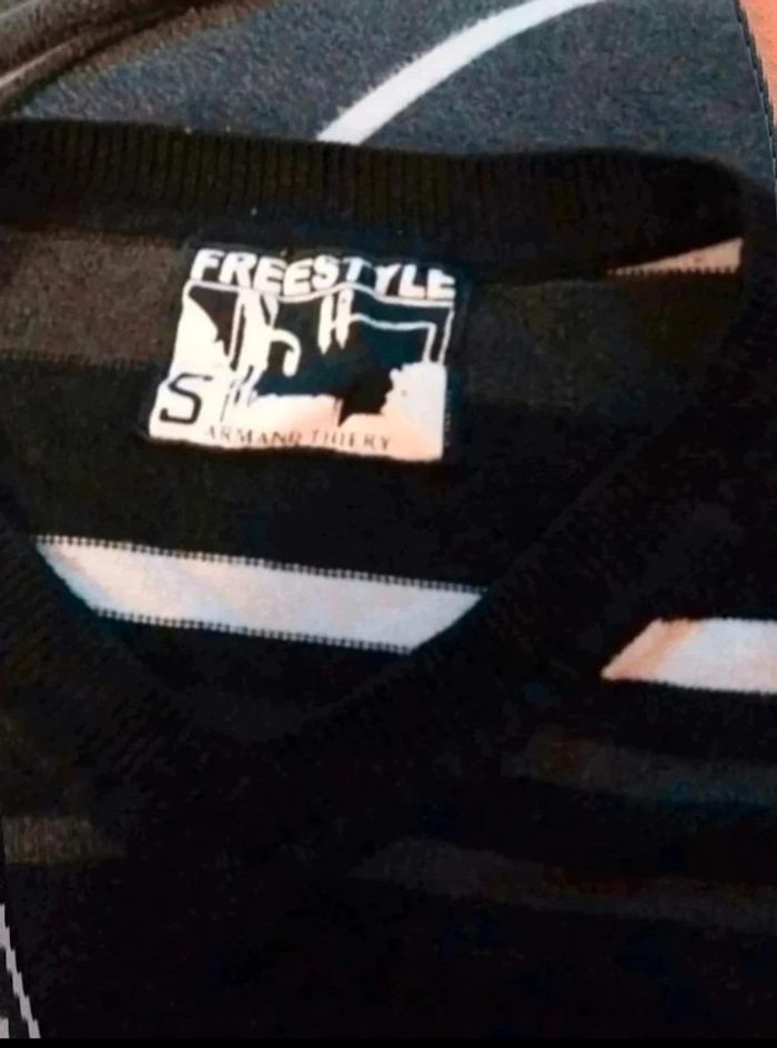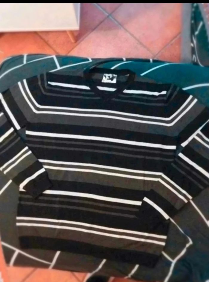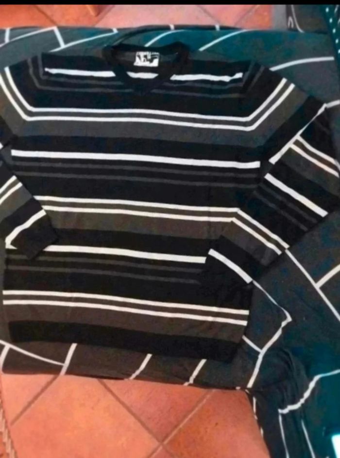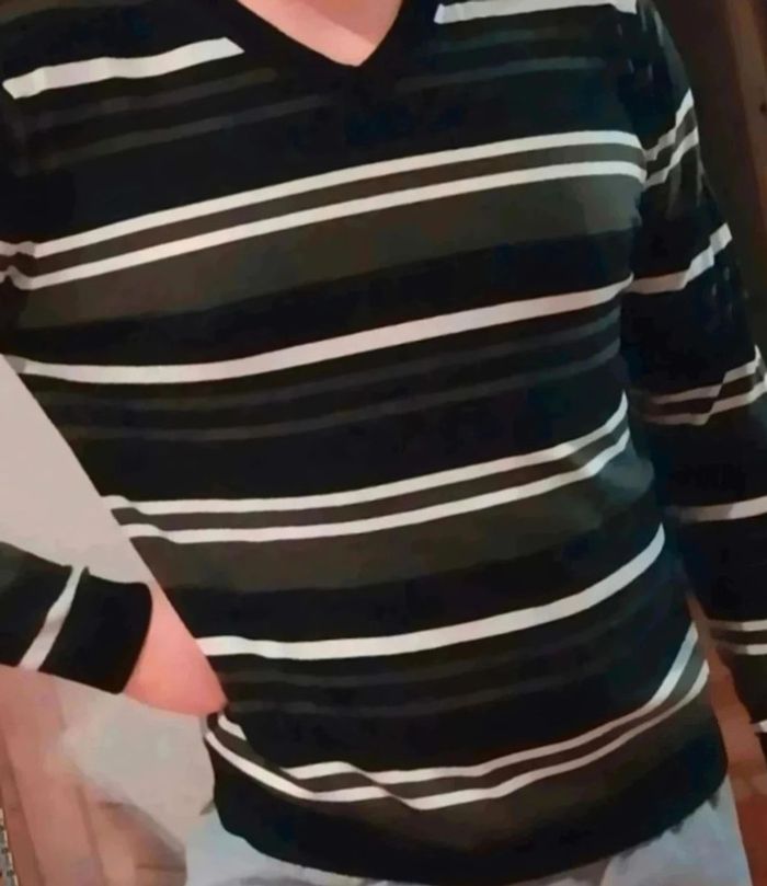 Jolie pull taille S. Marque Armand Thiery Freestyle. Noir gris et blanc a rayures #hommeadelicia44