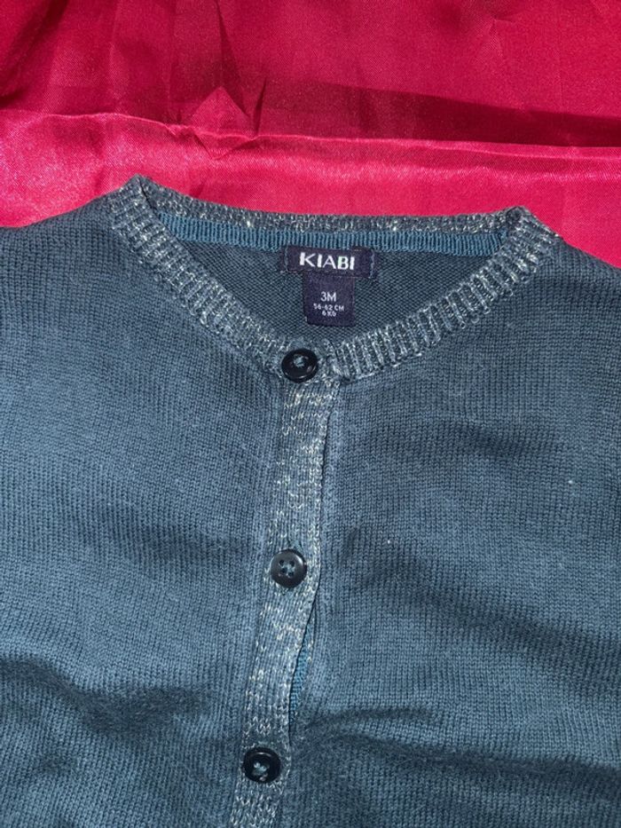 Gilet bébé fille • 3 mois • Kiabi • bon état Vert avec bordures doré #fahlyaechange #fahlyavetementbébé #giletkiabi3moisfille #kiabibebefille