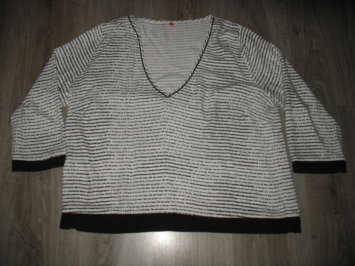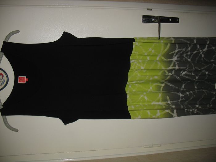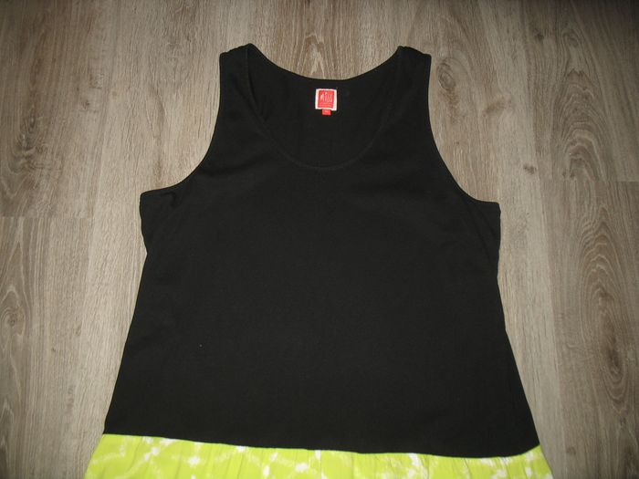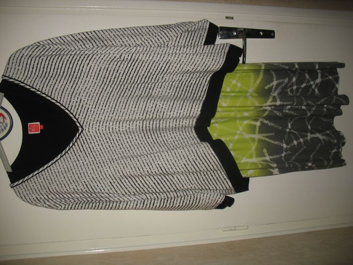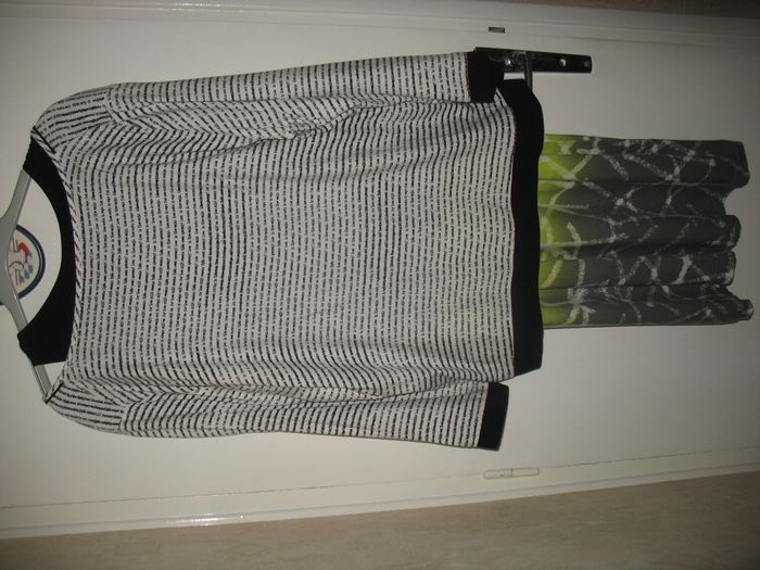 ENSEMBLE 2 PCS : ROBE + TEE SHIRT "MISS CAPTAIN" - TAILLE 46 - n°01 Ensemble 2 pièces : - Robe sans manche haut noir - Bas Gris / Vert et blanc - Dimensions aisselle à aisselle : 47 cm et longueur totale :99 cm. - Tee shirt à manches 3/4 blanc et écriture fine noire - Col V - Bande noire dans le bas - Dimensions épaule à épaule : 44 cm et longueur totale : 61 cm - A signaler 2 petits trous qui se trouve : 1 dans le dos et l'autre sur l'épaule gauche dans l'écriture. Les 2 articles sont du même thème mais peuvent se porter indépendamment - Matière : 100% viscose. Article d’occasion en très bon état - Ni tache - Lavé et repassé pour la vente. Possibilité d'envoyer d'autres photos sur simple demande. Allez voir mes autres ventes, je vide les placards. Beaucoup de vêtements de marque et beaucoup de jouets. Maison non-fumeur - Sans animaux. Réduction lot activée. Remise en mains propres ou possibilité d'envoi au tarif en vigueur à votre charge. Retour Refusé. Pour tout renseignement, n'hésitez pas à me contacter, je répondrai volontiers à vos questions. Réponse Assurée. Pour Consulter mes autres annonces tapez Nathg2210.