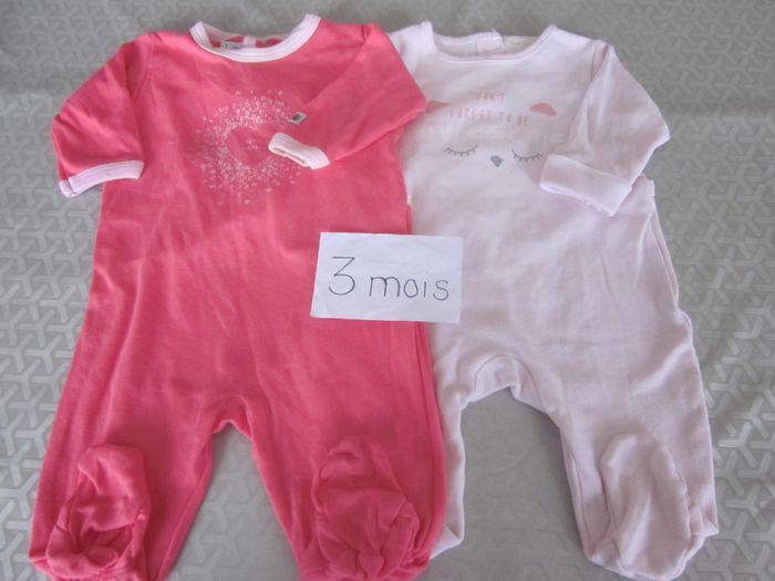 3 mois, 2 pyjamas coton, zara, petit bateau