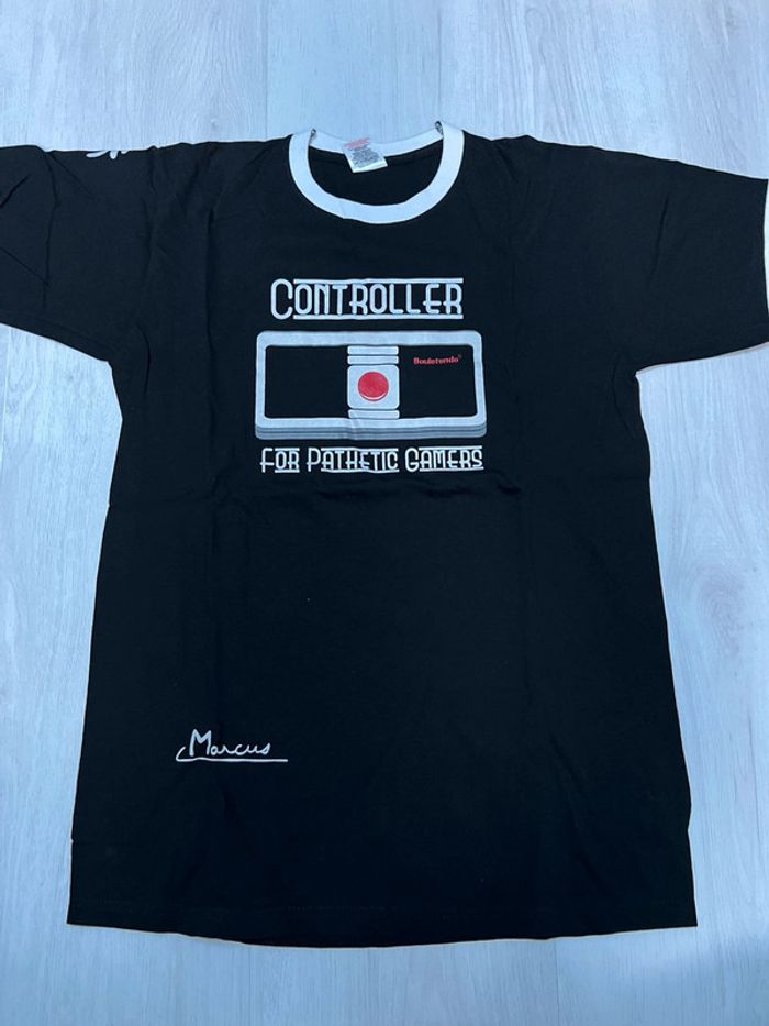 T-shirt taille M du journaliste et présentateur de jeux vidéo Marc « Marcus » Lacombe (entre autre connu chez Game One). Neuf, jamais porté. #harmonydschomme #harmonydscgaming