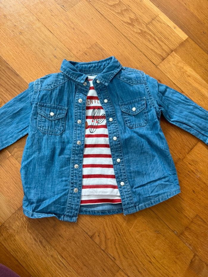 Ensemble chemise et tee shirt bout’chou mixte 9 mois - photo numéro 1