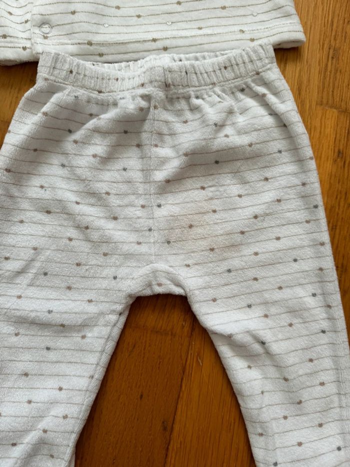 Très peu porté, taille correctement, toujours touché doux Légère tâche sur le pantalon (voir photo) d’où le petit prix #harmonydscenfant3mois #harmonydscenfant6mois