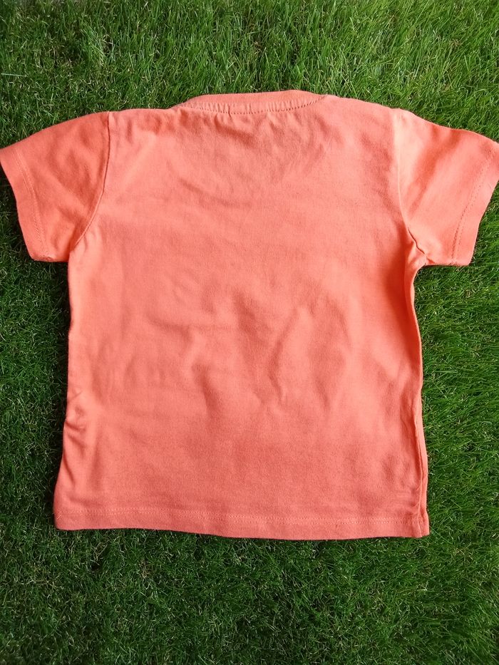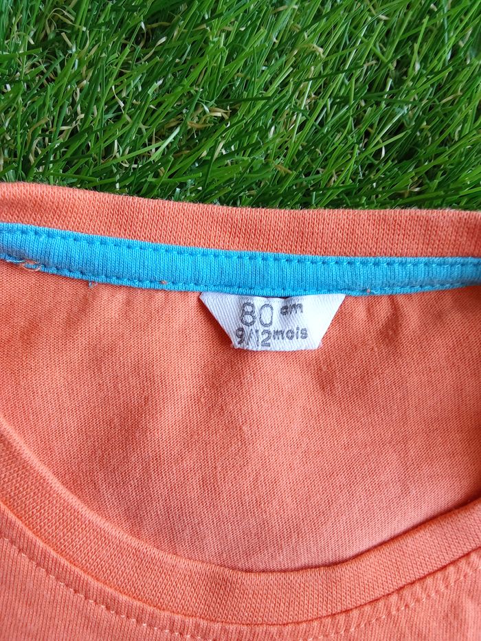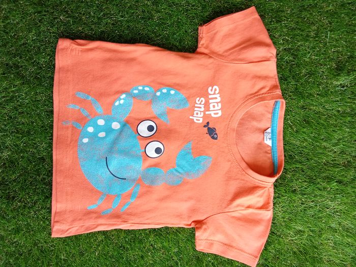 T-shirt sans marque orange avec un crabe bleu, taille 9-12 mois Référence : 375