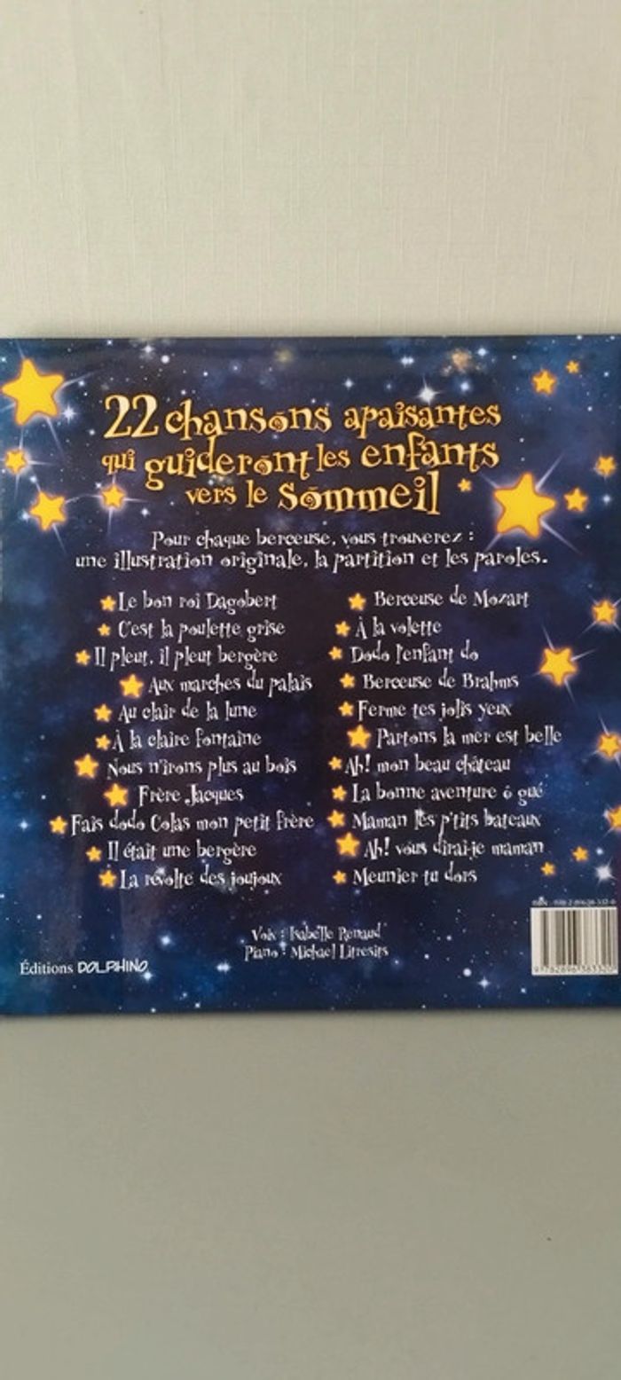 Grand livre 29x29cm avec CD 22 chansons douces pour s'endormir. Livre couverture rembourée pages avec partitions. Édition Dolphino État neuf. #linejaclivres