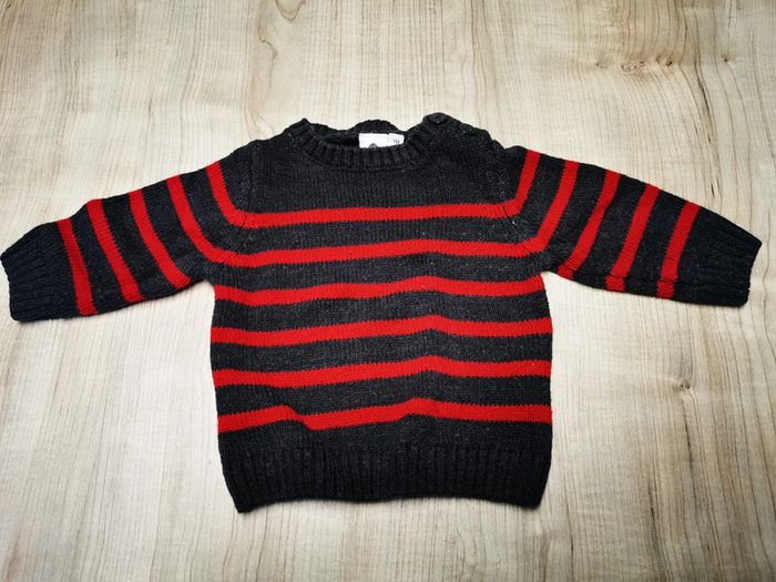 Pull Z gris raillé rouge taille 3 mois - photo numéro 1