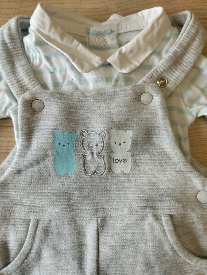 Ensemble obaibi composé de Body manches longues léger Salopette légère Comme neuf Pour filtrer sur les vêtements garçon en taille 3 mois -> #leeloo3582_3mois