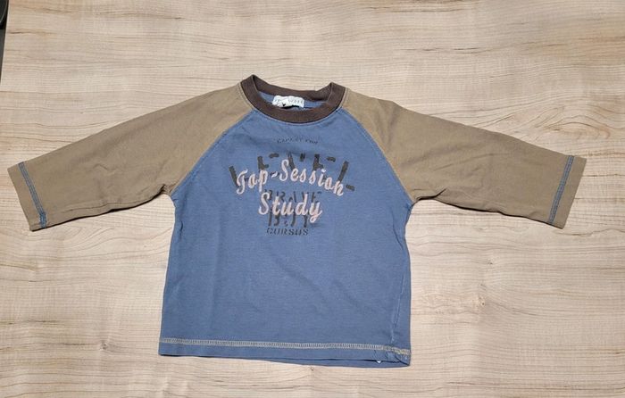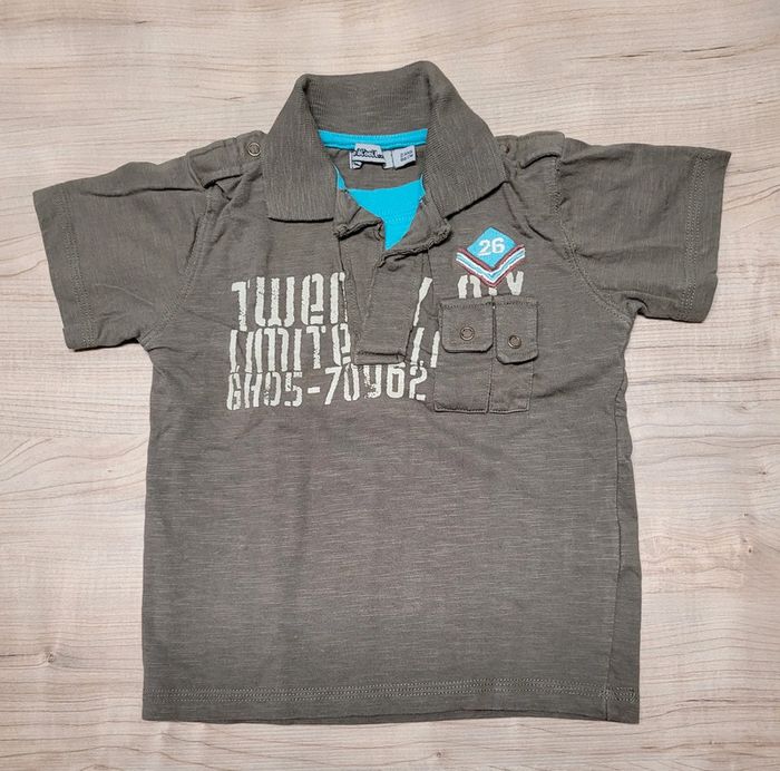 Lot de 2 Tee-shirts -Tee-shirts manches courtes Marque tap à l'œil Taille 2 ans 86 cm Couleur kaki et bleu -Tee-shirt manches longues Marque vertbaudet Couleur bleu et kaki TbE Pour filtrer sur les vêtements garçon en taille 2 ans -> #leeloo3582_24mois