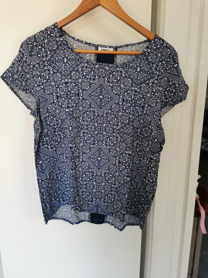 T-shirt manches courtes Marque only Taille L T40 Couleur bleu marine avec motifs Très bon état Pour filtrer sur les vêtements femme taille L -> #leeloo3582_femmeL #only #femme