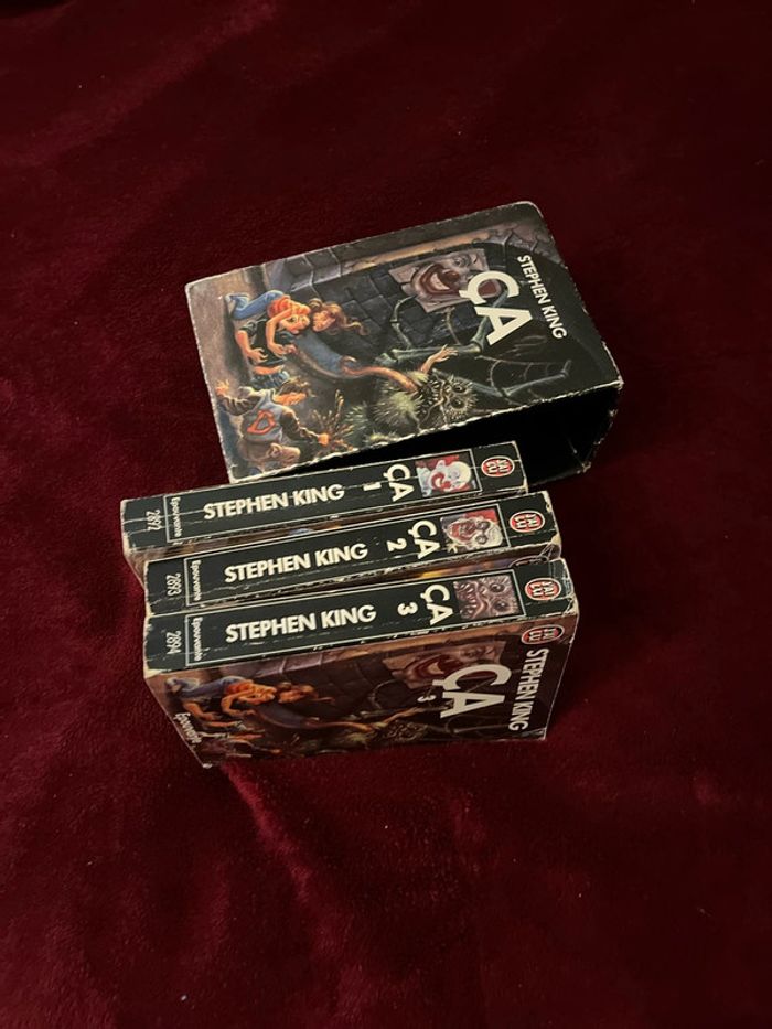 Bon état. La boîte a vécu mais les livres sont en bon état. Date des années 80. Idéal fan de Stephen King le maître de l horreur. Trilogie effrayante. DVD épouvante #stephenking #filmça #ca1 #ça2 #ça3 #coffretstephenking #thriller