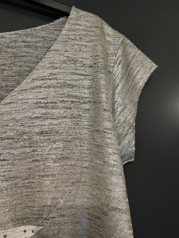 Bon état manque quelques strass. Made in Italy. Pas de taille sur l étiquette. Peut se porter en taille S en mode oversize avec une épaule découverte. En 38 également. Sinon bien regarder les mesures pour être sure que la taille vous convienne. Idéal pour les fêtes. #teeshirtargenté #teeshirtetoile #tenuefête #fête #fetes #fêtedenoel #fetedefindannee #élégant