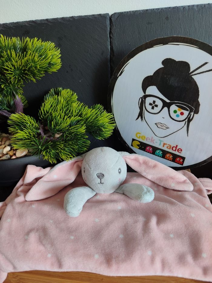 doudou carré plat lapin Simba toys rose gris blanc étoiles DD003146 Attache - photo numéro 1