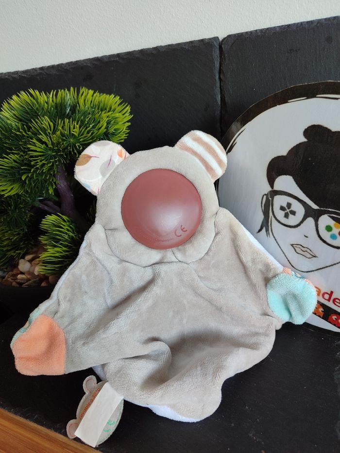 bouilles doudou et compagnie fort comme une ours blanc gris marron orange bleu rayé beige - photo numéro 2