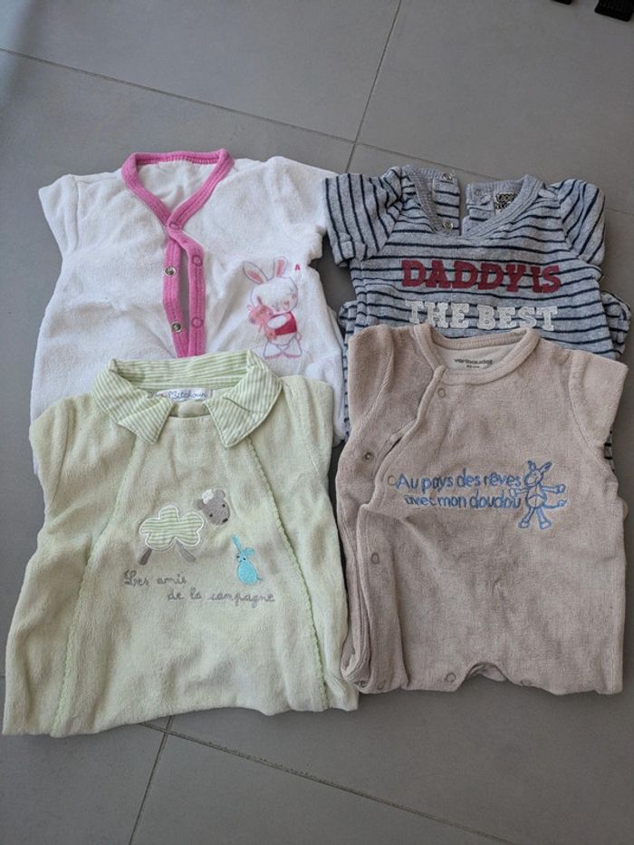 A vendre lot de 13 pyjamas épais/velours en taille naissance. Diverses marques.